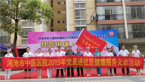 活动中,河池市中医医院作为市卫生健康委的代表队,在市卫生健康委的带领下,组织由医院临床三党支部医护人员组成的医疗卫生志愿服务队,在活动现场开展健康服务义诊及入户送健康送温暖等活动,全力配合做好活动各项工作。