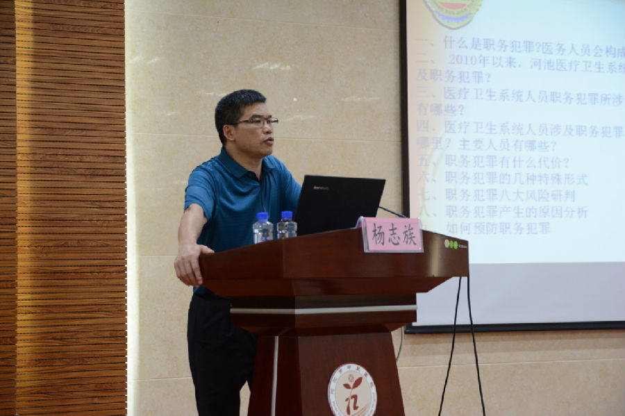 2017年5月3日,河池市中医医院举办“维护白衣圣洁,远离职务犯罪”主题廉政教育讲座