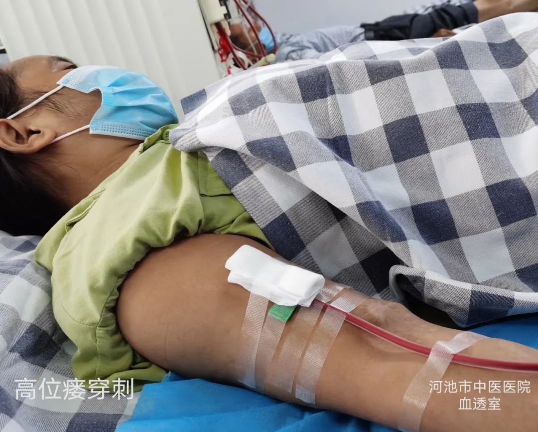 高位瘘的穿刺,上臂肌肉发达,血管深埋肌肉,穿刺难度可想而知,这基本上算是“灭绝师太”级别的静脉穿刺,至此,你会不会像我一样羡慕和钦佩她们呢! 时常看到她们汗流浃背、有条不紊、处变不惊的完成一个又一个静脉穿刺,让血透治疗得以顺利完成,让血透病人跟常人一样过上高品质的生活和回归社会,让人由衷的 钦佩和感动。